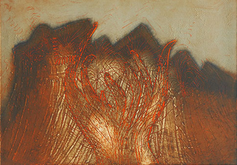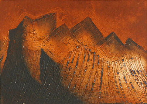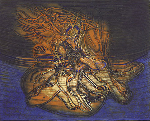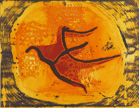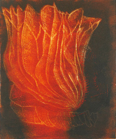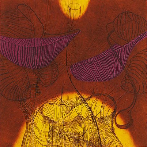 Zu dieser Grafik existiert die präparierte und signierte Druckplatte. In der Ausstellung werden auch zwei unterschiedlich Abdrucke gezeigt.
